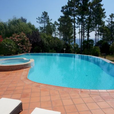 Private small cove, panoramic overflowing pool of 100 m² with integrated jacuzzi and a spa on the terrace.