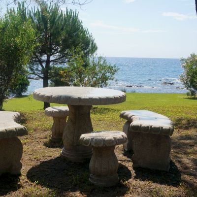 Swimming is possible at the foot of the villa, with the Tanone creek just 200 metres away, Canella bay featuring a sandy beach at 900 metres, and Favone bay along with the first shops, restaurants, and various activities located 1.5 kilometres away (sailing, jet-skiing, horse riding, quad biking, water skiing).