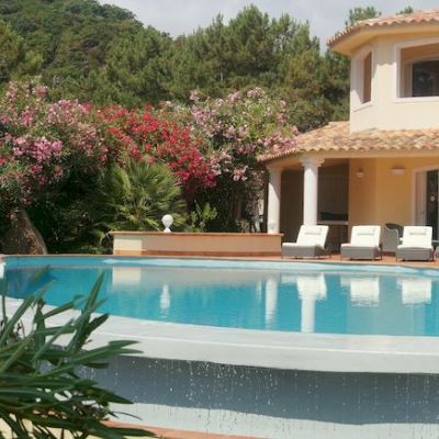 Stunning villa for rent in Southern Corsica, classified as a 5-star tourist accommodation, newly built on a "feet in the water" plot of over one hectare situated between Porto-Vecchio and Solenzara.